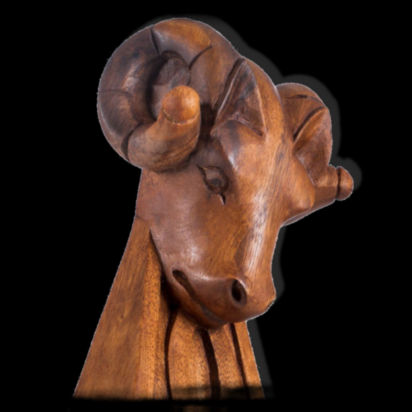 formovaného do tvaru rohatého barana a zdobeného pletencom