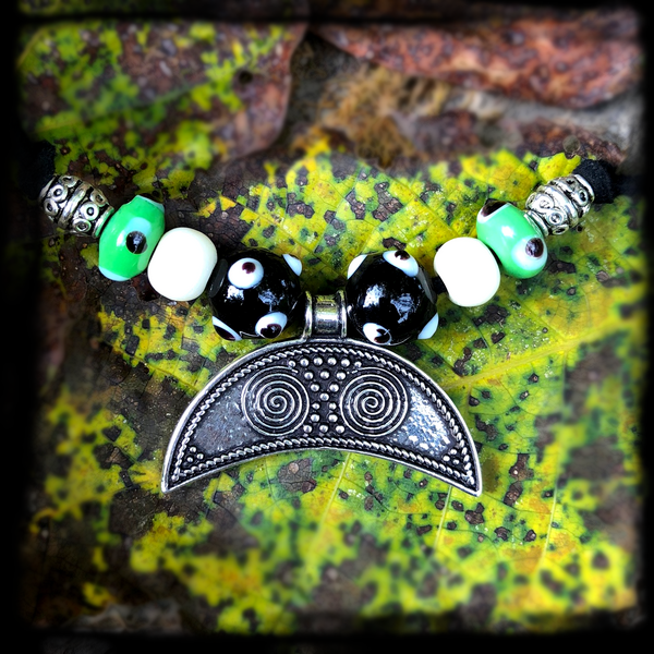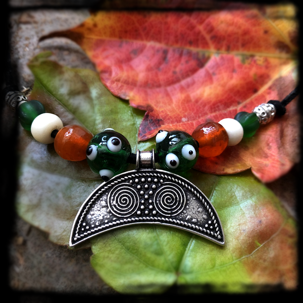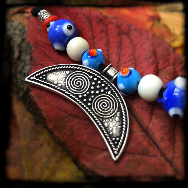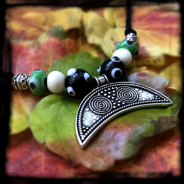 Prívesok má charakteristický tvar polmesiaca zdobeného špirálami, ktoré sú typickým dekoratívnym prvkom severských a slovanských šperkov. V minulosti sa lunice nosili ako ochranné amulety, najmä ženami, a boli považované za symbol harmónie, plodnosti a spojenia s prírodnými cyklami.